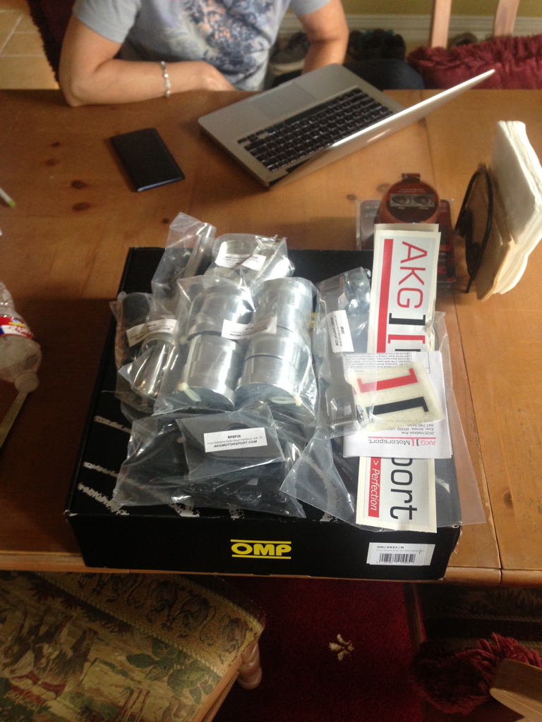 Now the fun stuff started showing up, I placed a full order at AKG Motorsport to get a bunch of their bushings. I ended up getting their solid differential and rear subframe bushings. Along with that I got their reinforcement plates for the front and rear subframes due to those being potential problems that I wanted to prevent.