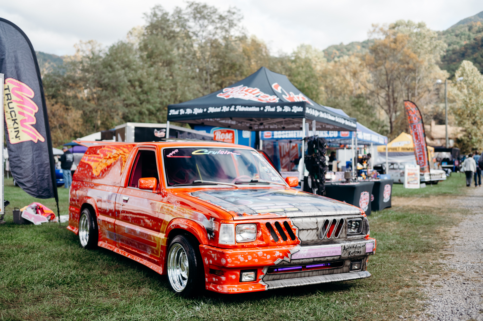 I stumbled onto the Southeast All-Truck Nationals show in Maggie Valley, NC during a family trip in October. Driving through the city, a small unassuming valley town less than two hours from Gatlinburg, every single lot was filled with some combination of classic mini trucks, body dropped late model trucks, and show-style 4x4s. The main event was on Saturday, but it was clear that attendees were here for the weekend, and that for a couple days, Maggie Valley and the show were one.
